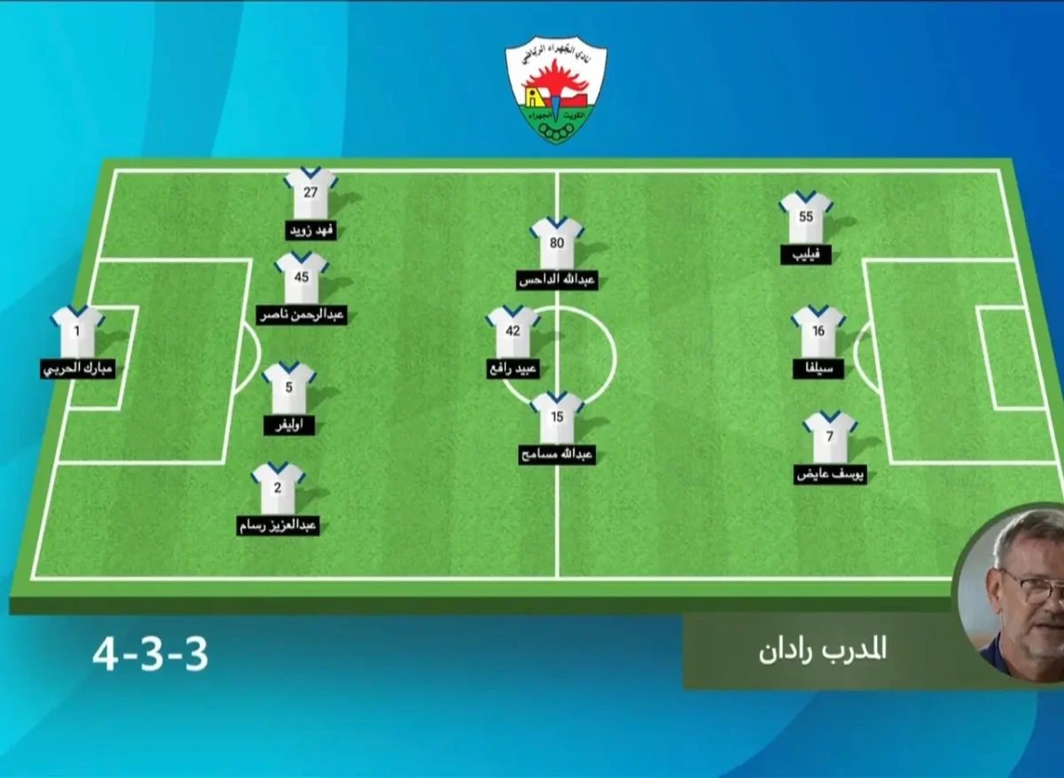 في المقابل أعلن الكرواتي رادان، تشكيل الجهراء والذي جاء كالآتي: