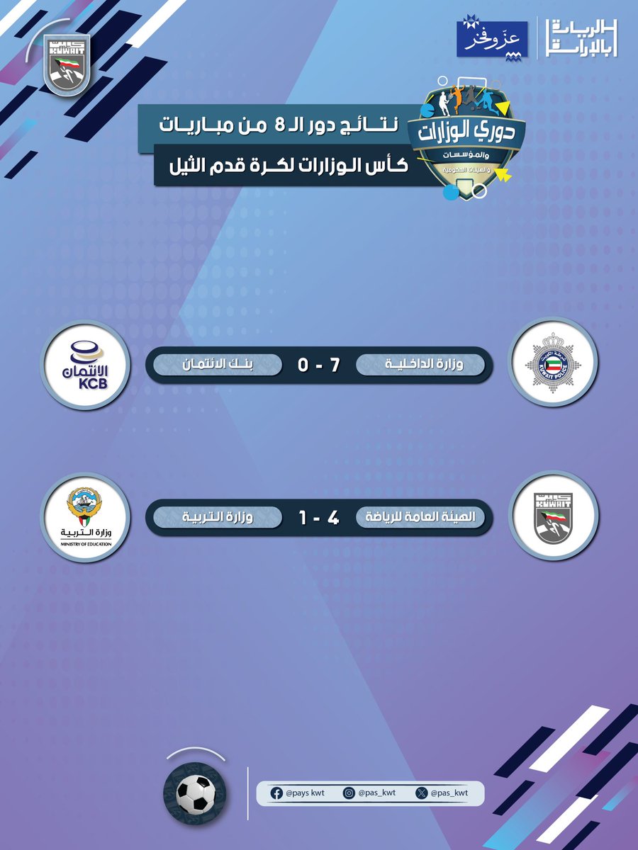 “الداخلية” والهيئة العامة للرياضة يحققان الفوز في كأس الوزارات لكرة قدم الثيل