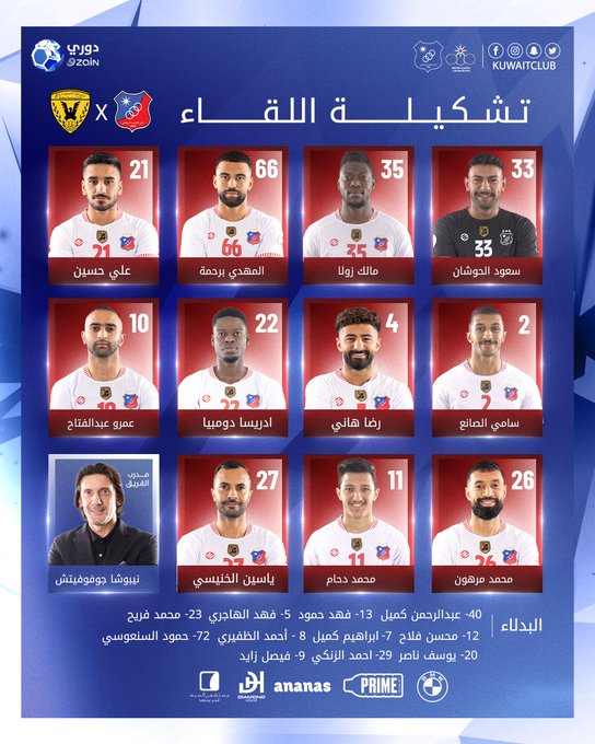 دحام والخنيسي يقودان تشكيل الكويت أمام القادسية في دوري زين