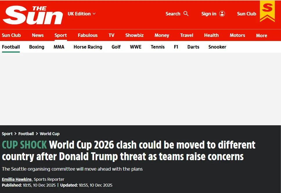 ديسمبر 11, 2025قالت صحيفة “ذا صن” البريطانية، أن الاتحاد الدولي لكرة القدم “فيفا” يدرس إجراء تعديل محتمل على مكان إقامة مباراة مصر وإيران.