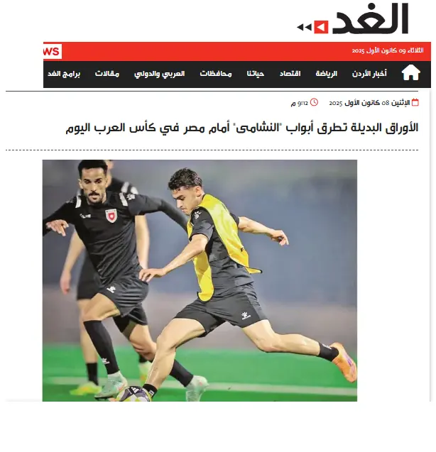فيما جاء عنوان صحيفة “الغد”: “الأوراق البديلة تطرق أبواب النشامى أمام مصر في كأس العرب اليوم”.