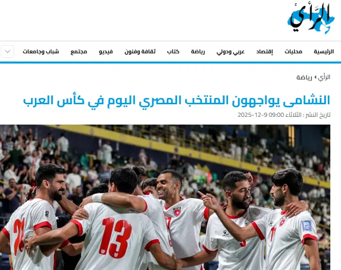 أما صحيفة “الرأى” فعنونت: “النشامى يواجهون منتخب مصر اليوم فى كأس العرب”.