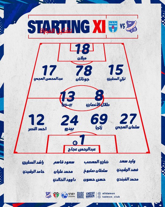17 فبراير, 2026أعلن الجهاز الفني لنادي التضامن تشكيله لمواجهة كاظمة في مباراة مؤجلة من الأسبوع الحادي عشر ضمن منافسات دوري زين للدرجة الممتازة للموسم الرياضي 2025-2026.
